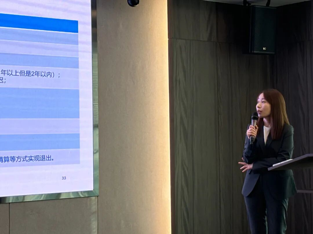 主题分享环节,毕马威中国资产管理业审计合伙人刘西茜女士以《私募股权基金财务、运营和投后管理》为核心主题,进行了系统性的梳理与讲解。她从私募股权基金的会计核算基础入手,逐步深入到母基金的会计处理与运营工作要点,并详细阐述了母基金应如何精准解读被投基金的财务报表,以识别关键信息与潜在风险。随后,刘西茜女士结合实务,介绍了私募股权投资项目的多种估值方法论,并对私募股权基金中复杂且核心的分配机制进行了清晰的解析,为基金管理人实现精细化、合规化运营提供了坚实的财务与运营框架。